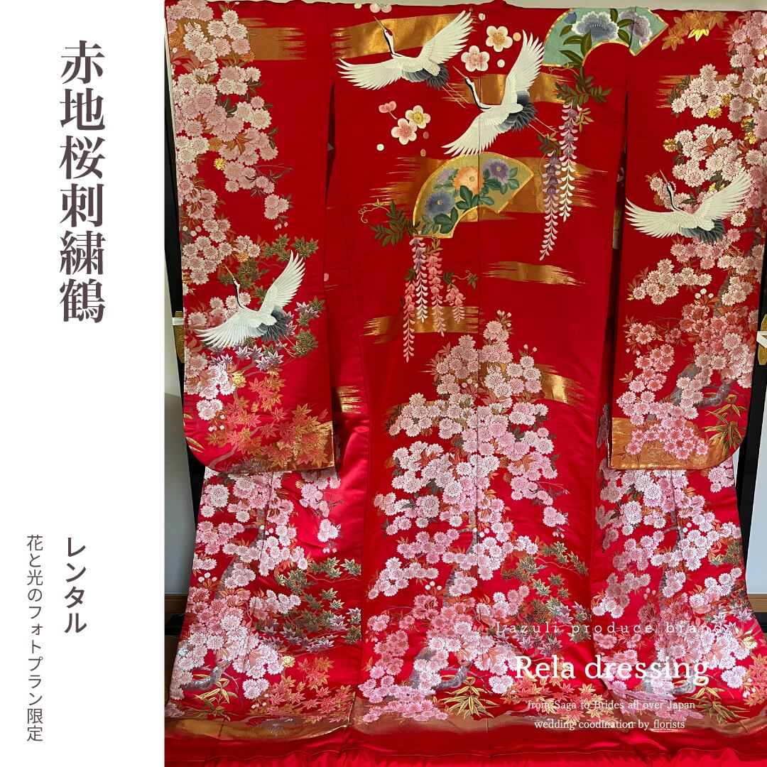 赤地桜刺繍鶴【色-㊱】レンタル色打掛